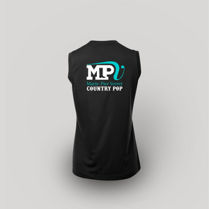 Camisole Noir avec imprimé logo MPV à l’avant (côté coeur) et un plus gros au dos. De type 'Dry Fit'. La camisole parfaite pour danser au max sur la piste de danse.