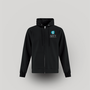 Hoodies à fermeture éclair avec imprimé logo ADTV à l’avant et au dos. Ce hoodies convient autant à l’homme que la femme! Disponible en noir et marine