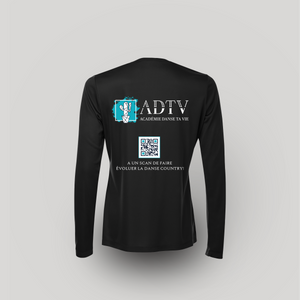 Gilet manche longue avec imprimé logo ADTV à l’avant et au dos. Le chandail parfait pour la transition de saison et les transition de température qu'on vit lorsqu'on arrive frais et dispo et qu'après quelques danses on a chaud ! Disponible en noir et marine